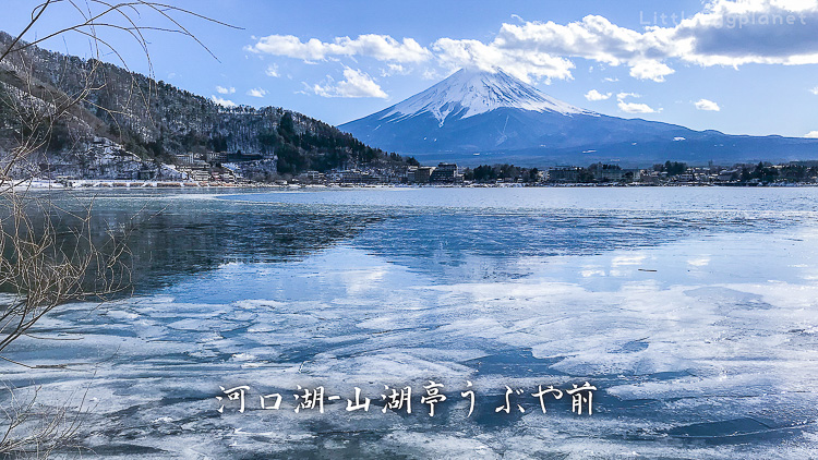 冬季的山中湖湖面結冰,形成一片雪白世界。茄雲這次拍攝的地點位於「平野の浜」。