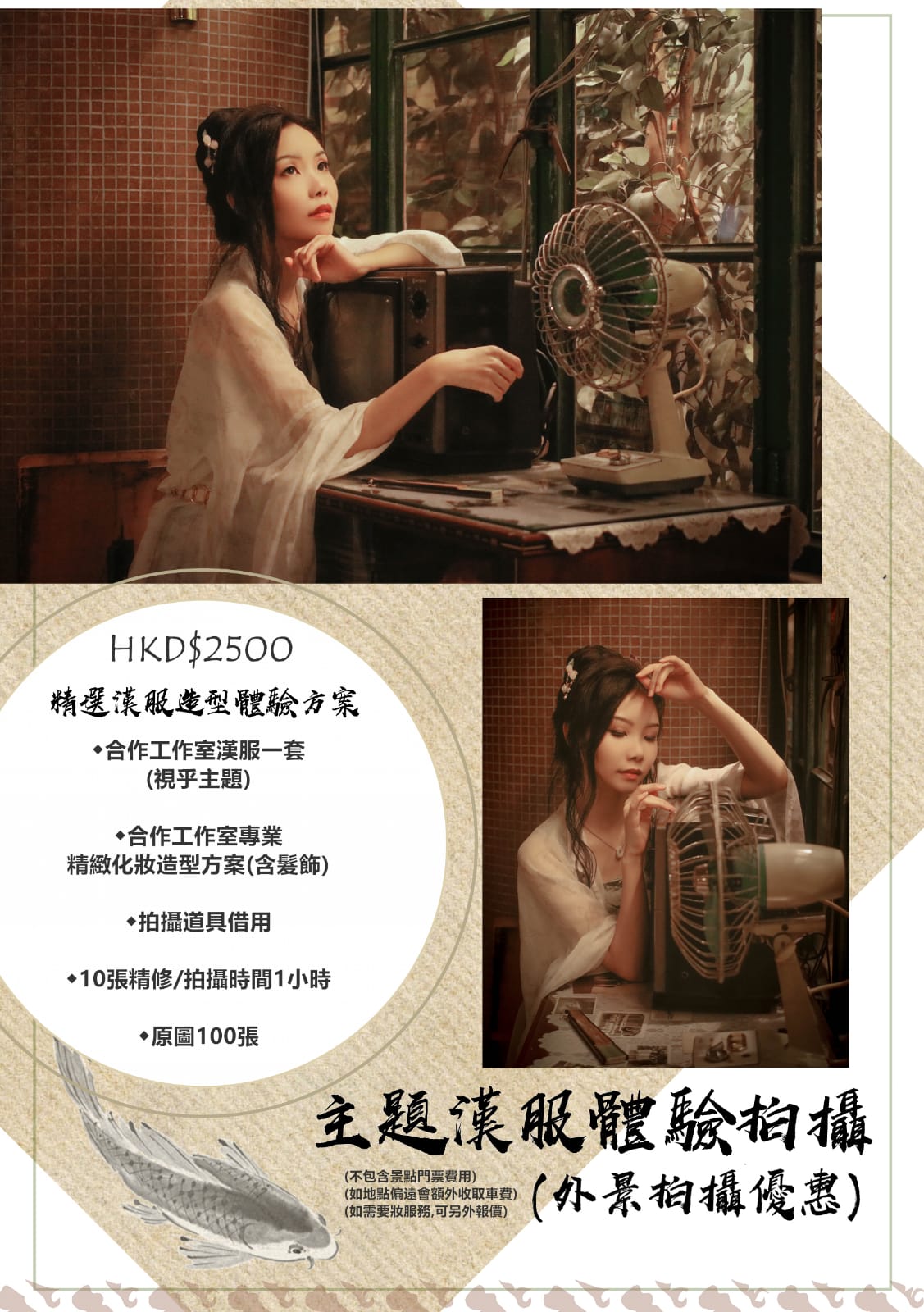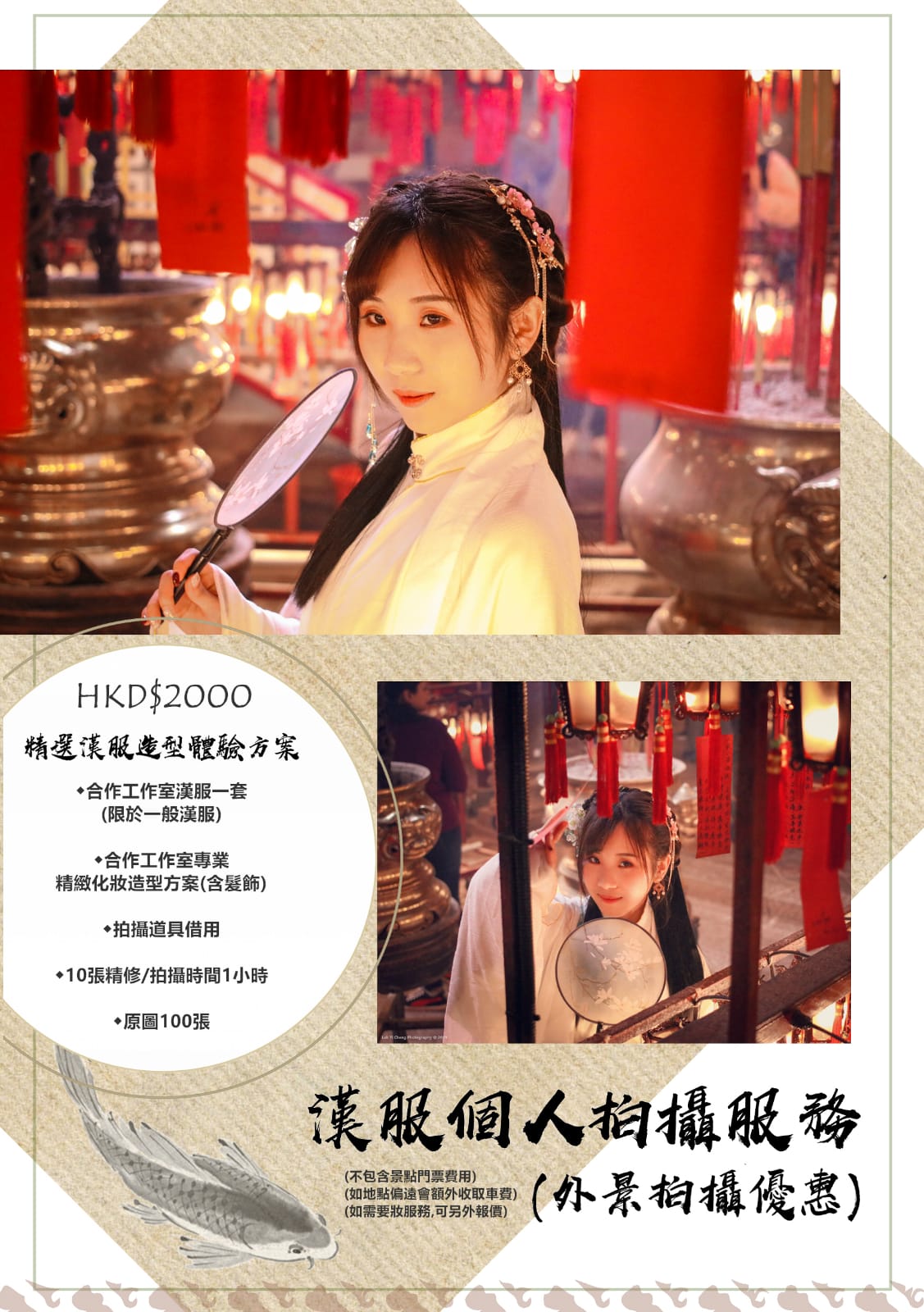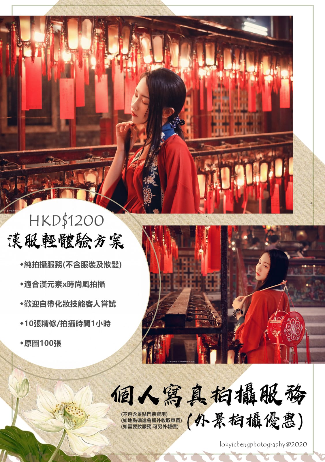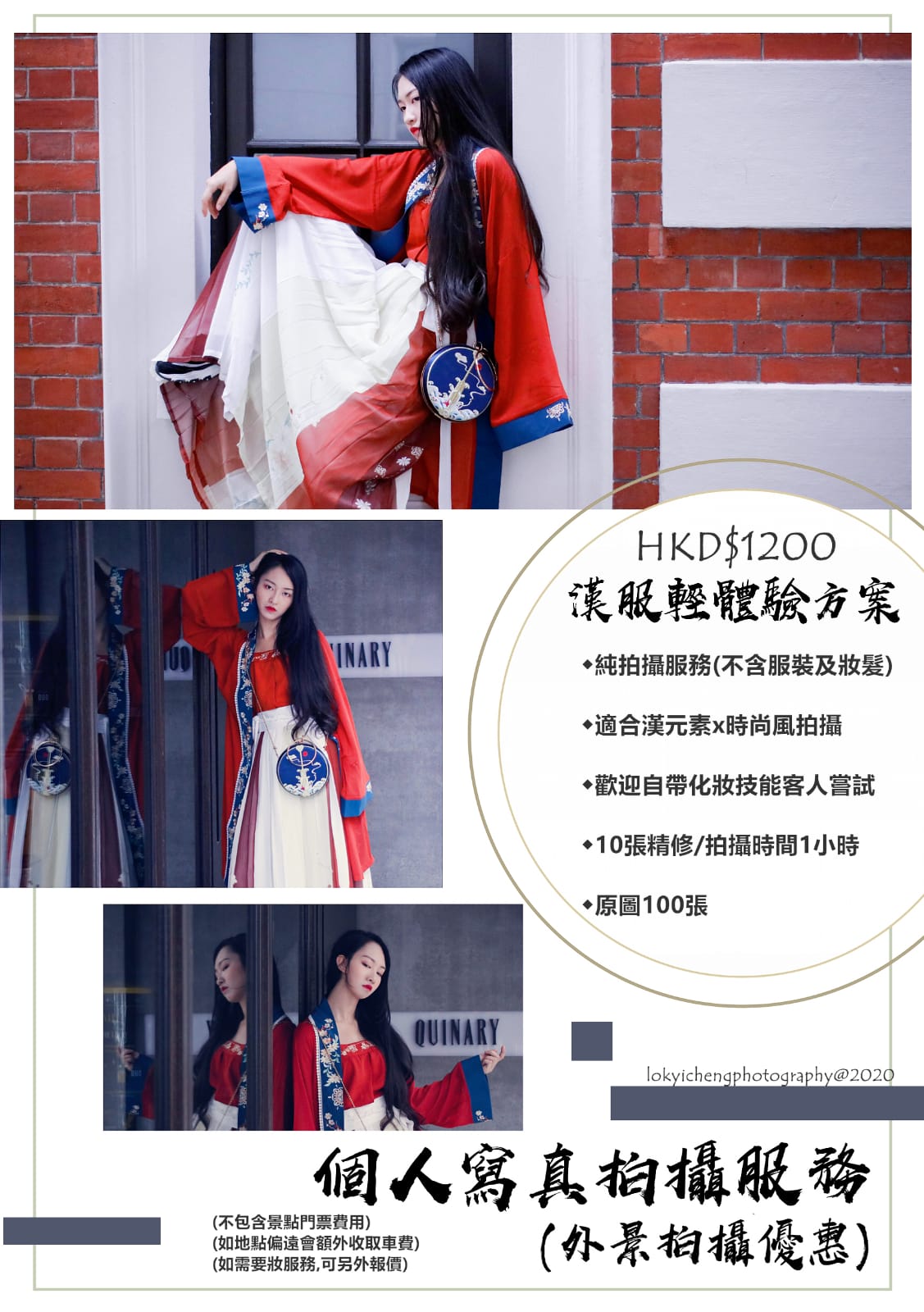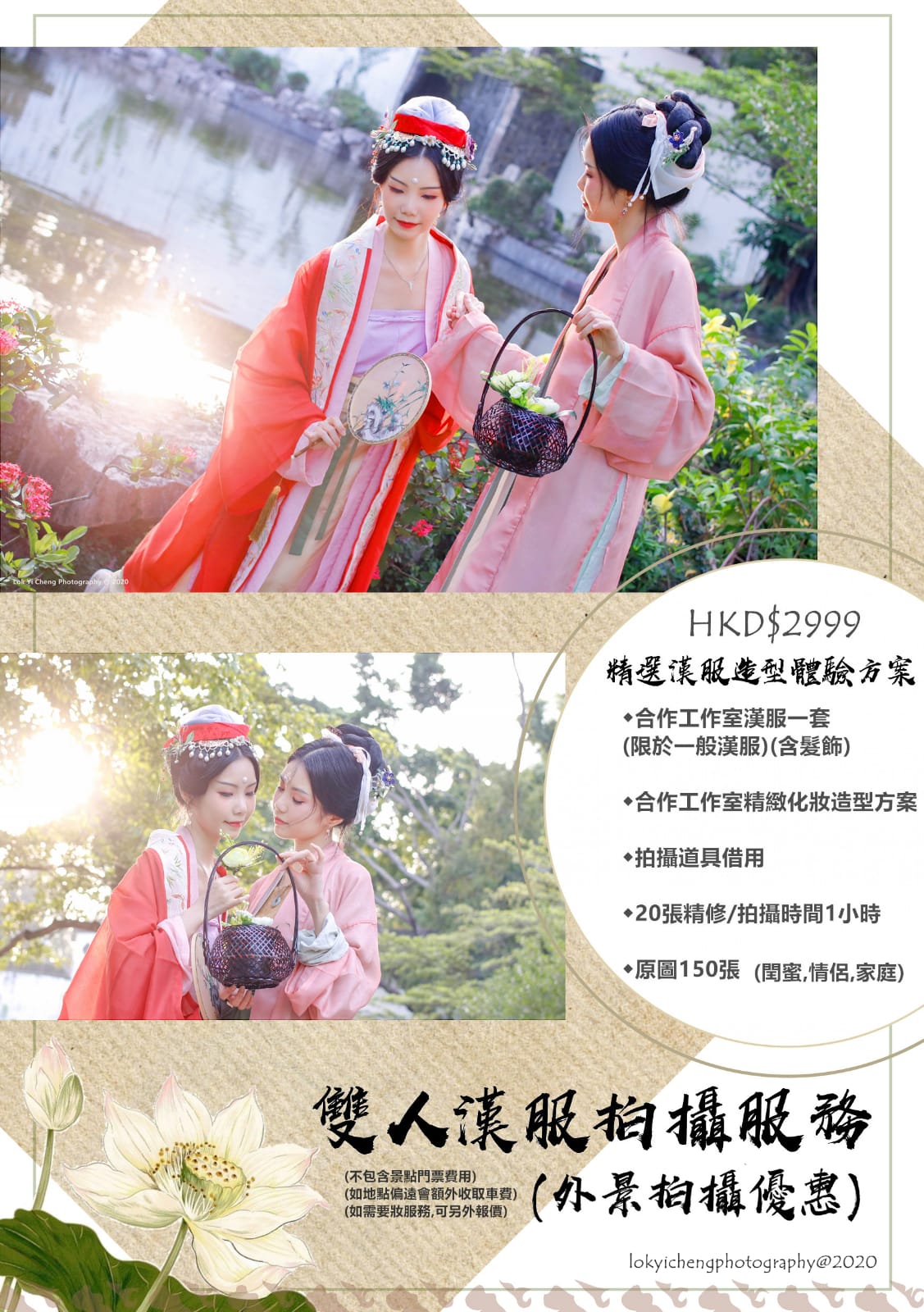 漢服攝影服務價目表(不包含漢服租借、造型、化妝):