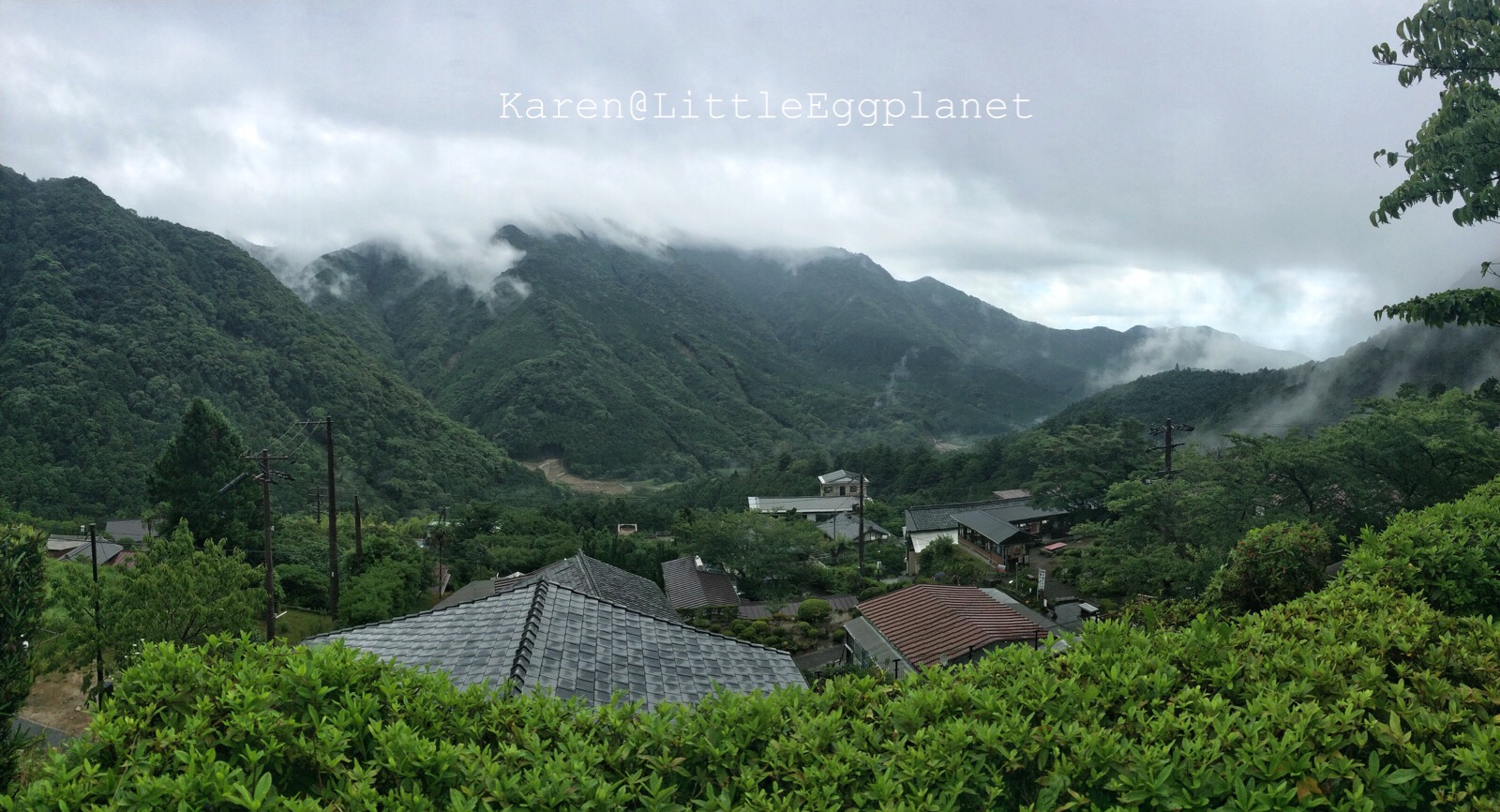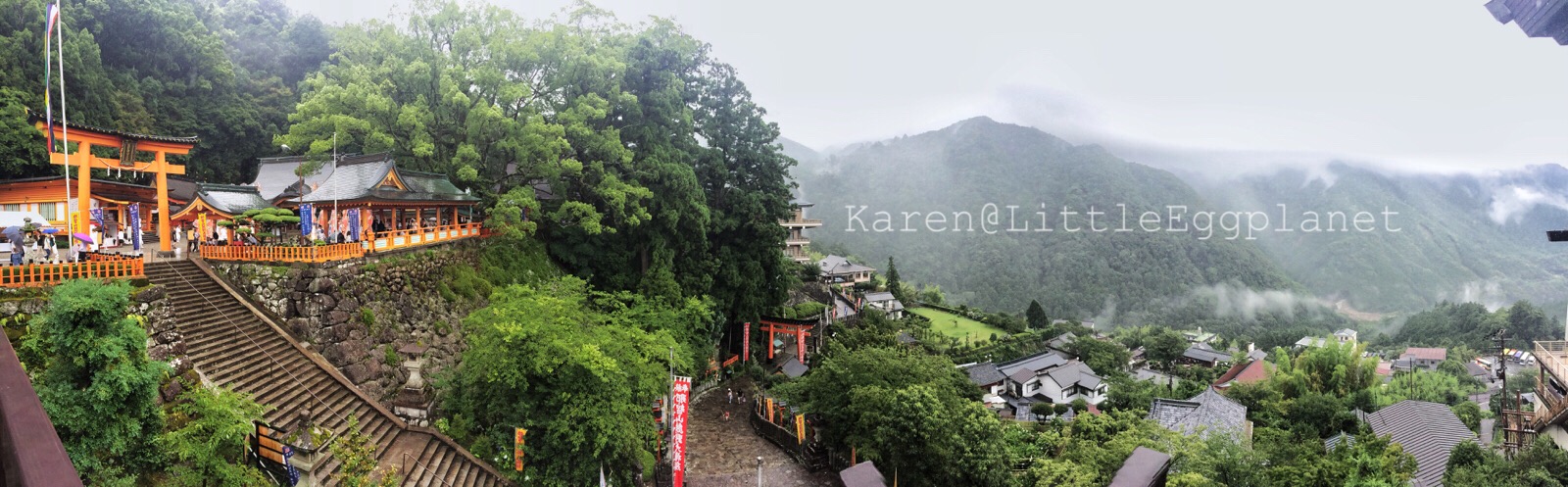 然後我自己到附近走走,其實,即使在非祭典日來,這裡也是個適合放鬆的郊外地方,聽說櫻花季節的時候特別美。這天天氣雖然一般,不過適逢下雨,山上反而有股「仙氣」籠罩。