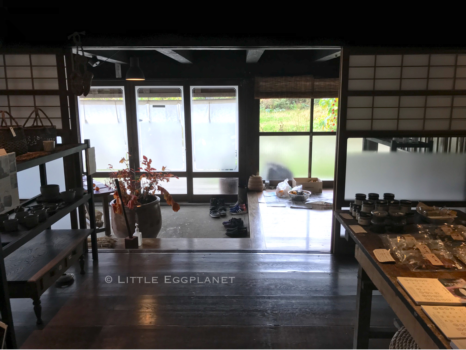里山Cafe以當季、當地食材作料理,用心烹調,連食器也特別精緻,喜歡的話可以買回家,餐廳有一個角落陳列著這些食器,明信片和一些小精品。食物方面,除了午餐原來還有自家製作的甜點供應,很想嘗試但無奈當時實在吃不下。