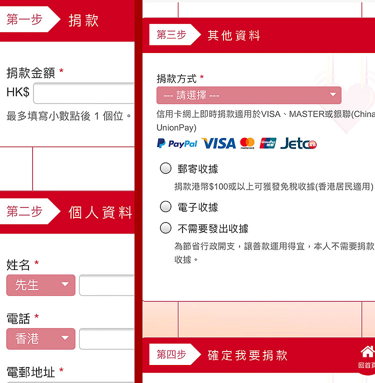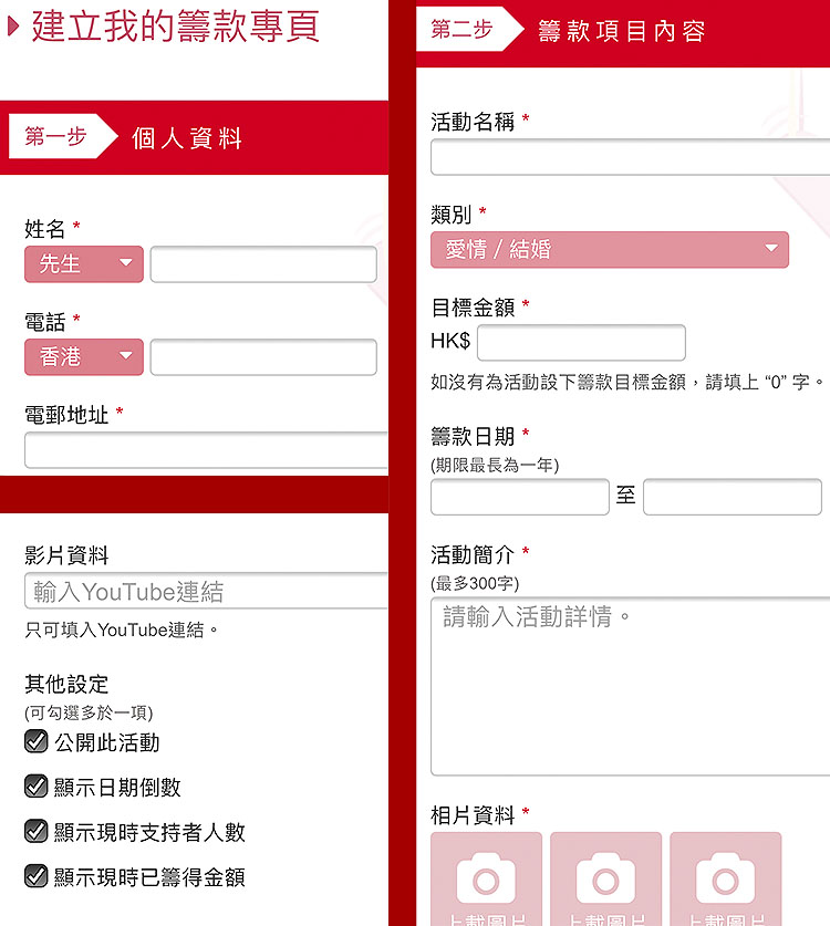 第一步:主人家填寫個人資料及籌款活動詳情